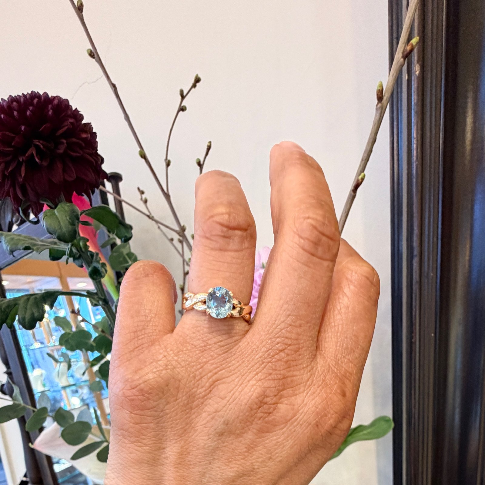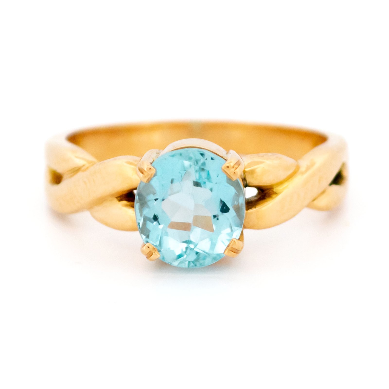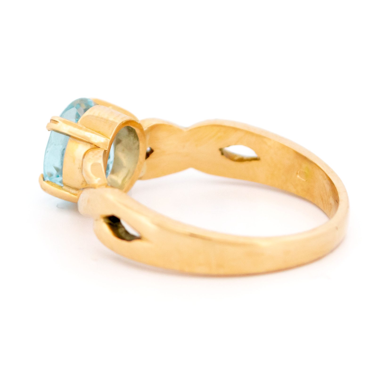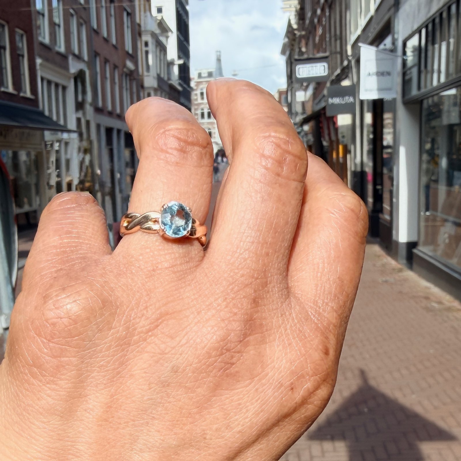 This elegant 18k gold ring from the Binenbaum Revival collection features a sparkling oval aquamarine of approx. 1.50ct. The gemstone’s clear aqua-blue tone is held within a sculptural twisted band that flows naturally around the setting. Smooth curves and polished gold create a refined piece with modern character and timeless charm. ✨