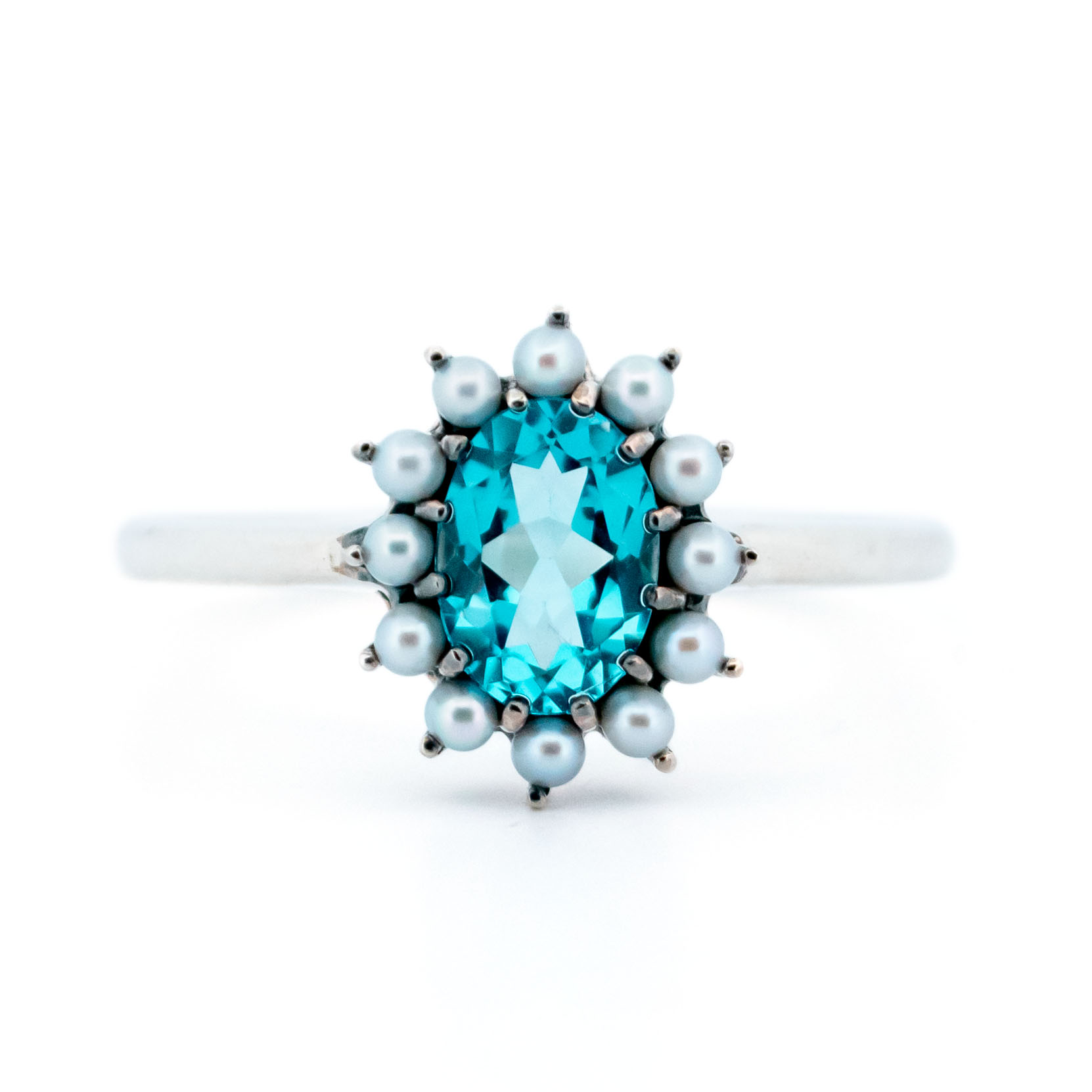Details: ±0.57ct Topaz, Pearls, 925′ Silver Ring