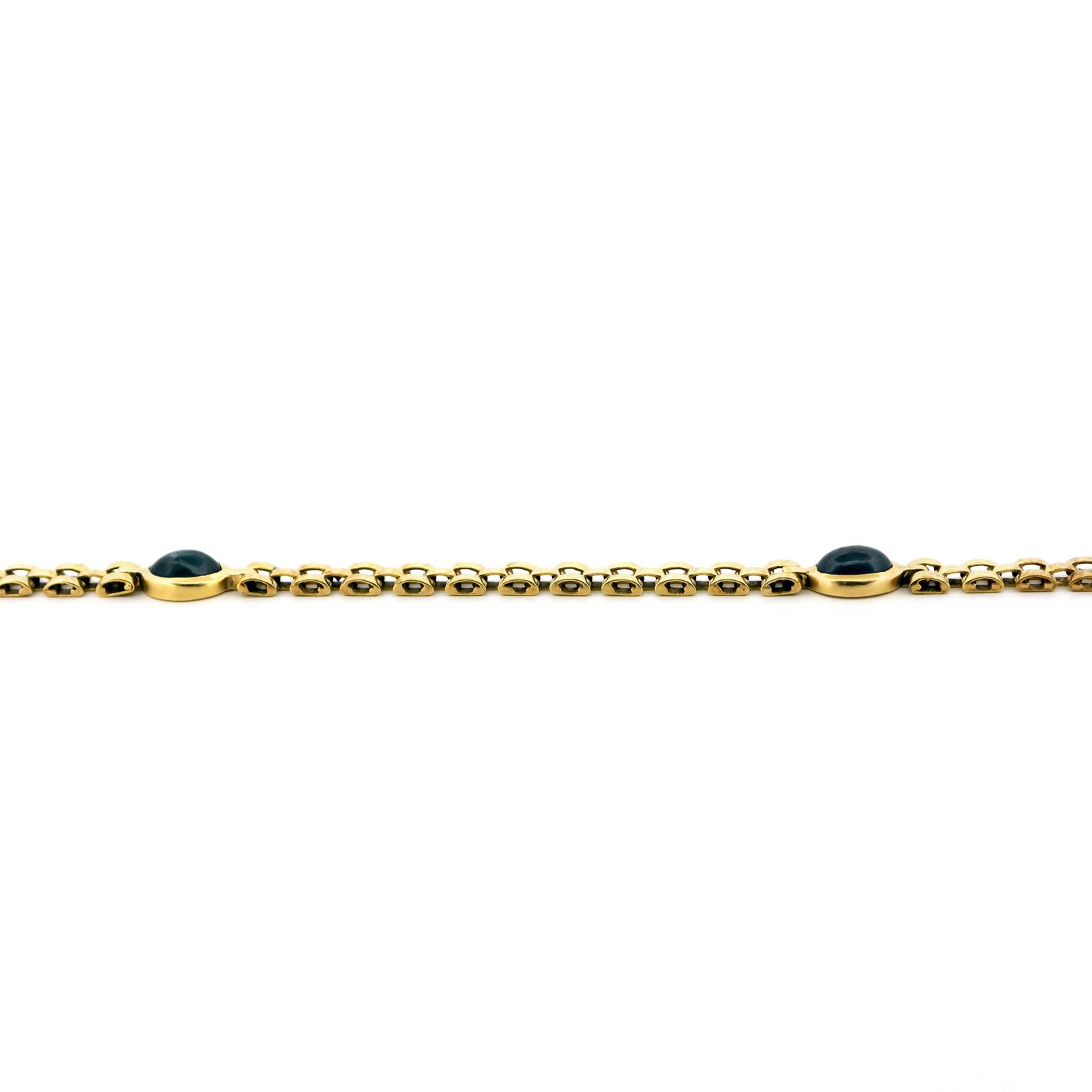 A refined mid-20th century station bracelet (1950–1970) featuring approx. 1.95ct of deep blue cabochon-cut sapphires 💙. The smooth, domed gemstones are bezel-set along a polished 14k yellow gold link chain, creating a beautiful rhythm of color and shine. Crafted by Slotboom Goud Import Rotterdam, this piece blends Dutch heritage with timeless elegance. Fluid on the wrist and quietly striking. Slotboom Goud Import Rotterdam.